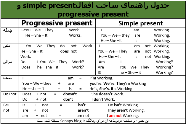 حال، جدولی رو براتون ساخم که به طور کامل براتون توضیح میده چطوری افعال مختلف سوالی، منفی و ... این دو حالت زمان رو درست بکنین...