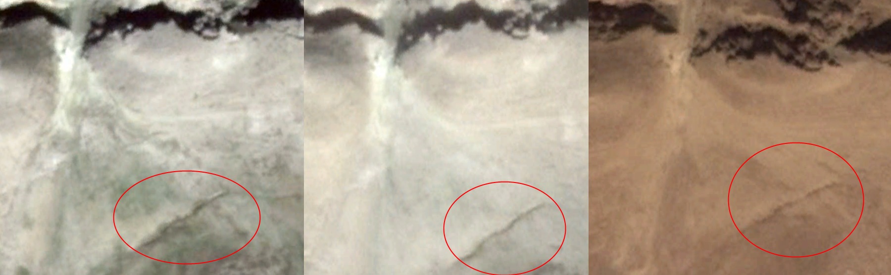 بنابراین، با استفاده از تصاویر ماهوارهای، میشه به جاده و دیوارههای سنگی رو که در کنار جاده بودن رو پیدا کرد.