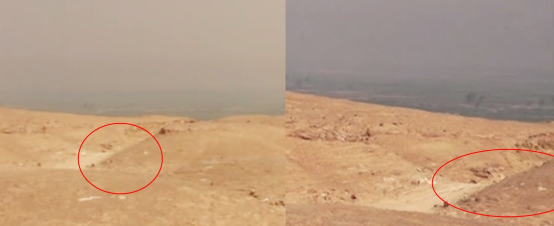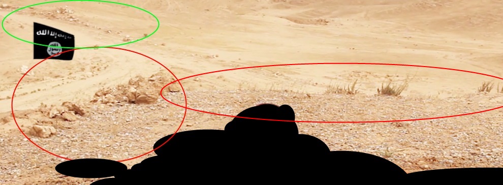 با توجه به وضعیت سایهها در فیلم، به نظر میرسد که فیلم در صبح برداشته شده در حالی که دوربین رو به شمال در حال فیلمبرداری بوده. بر همین اساس هم عاقلانه به نظر میرسد که اگر در محلی با تپههای فراوان در جنوب رقه به دنبال محل اعدامهای داعش بگردیم.