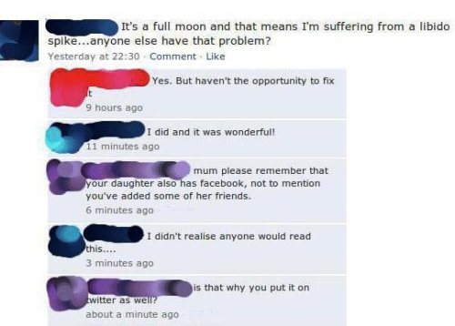ولی خوب، خیلی وقتا میشه که یه چیزی میگیم، بعد کلی ضایع میشیم جلو برخی دوستای بخصوص که اون رو میخونن!! خوب، تو کشور ما پدر مادرها اکثرا حوصله و وقت استفاده از سایتی مثل فیس بوک رو ندارن! ولی بیرون از اینجا چندان اینجوری نیست!...