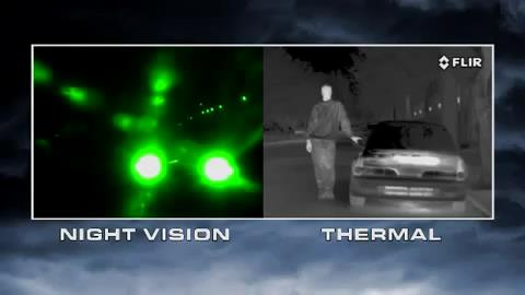 اما دوربین های گرمایی چون گرما رو میبینن و نشون میدن بدون دستکاری و کاری به نور ندارن(چه نور باشه، چه نباشه، چه کم باشه، چه زیاد باشه)، تصویرشون همیشه واضح و عالیه....تصویر بالا، حرکتی شخصی در سایهی یک ساختمون رو نشون میده که دوربین دید در شب به دلیل قرار گرفتن اون محیط در سایه نتونسته چیزی رو ببینه و دوربین گرمایی به سادگی شخص رو مشاهده میکنه